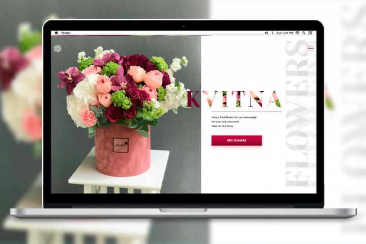 Нужно было сделать первый экран лендинга для магазина цветов, используя красывый букет и призыв к действию "Купить цветы"