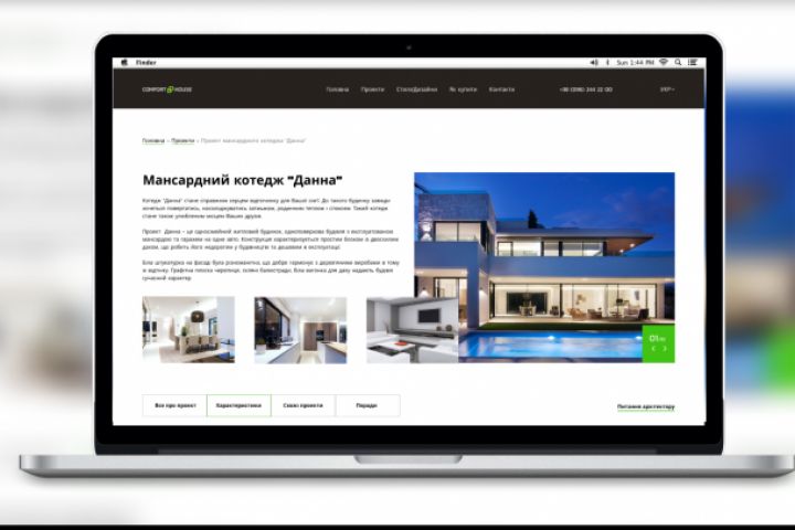 На этой странице сайта клиент может детально узнать о конкретном котедже, посмотреть планировку и все детали, которые его интересуют.