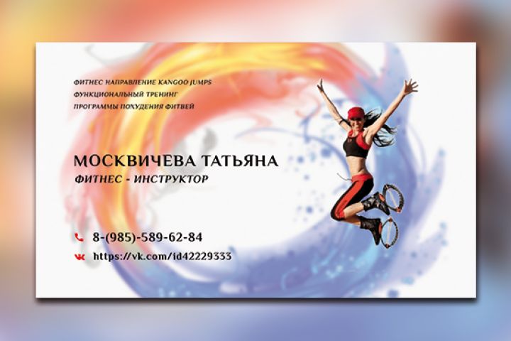 Визитка разработанна для фитнес-инструктора с направлением фитнеса Kangoo Jumps