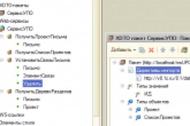 Требовалось сделать привязку писем в базе документооборота к проектам из базы управления проектов, чтобы из базы управления проектов можно было смотреть письма привязанные к какому-либо проекту. Реализовано было через web сервисы. Данные о проектах не хранятся в базе документооборота, в базе управления проектов хранится только связка проект-id письма.