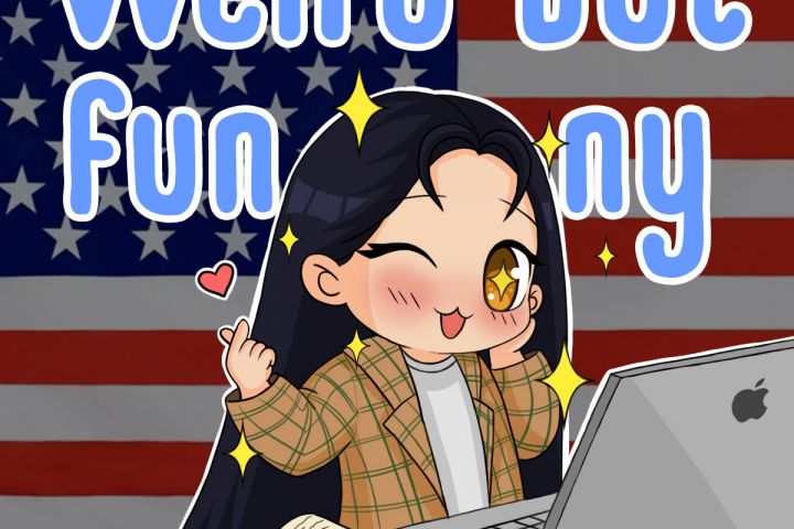 Заказчица (преподаватель английского языка) хотела, чтобы ее изобразили в ее типичной для нее рабочей атмосфере: в окружении ноутбука, блокнота и в пиджаке. Обязательно на аватарке должна была находиться фраза "Weird but funny" и флаг Англии/Америки на фоне, чтобы подчеркнуть профессиональную деятельность.