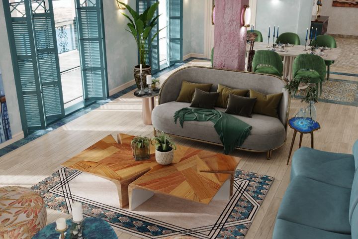 Вилла Марина расположена на острове Крит. Дизайн проект выполнен в средиземноморском стиле с нотками ар деко.