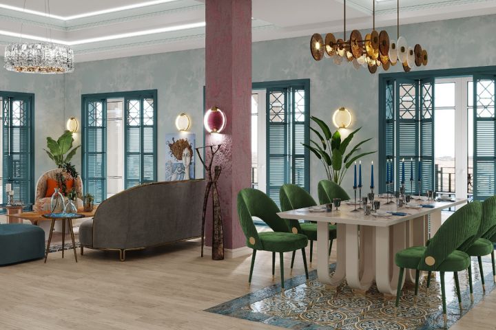 Интерьеры большой виллы на острове Крит спроектированы в средиземноморском стиле с элементами ар деко и использованием мотивов древнегреческой Критомикенской культуры