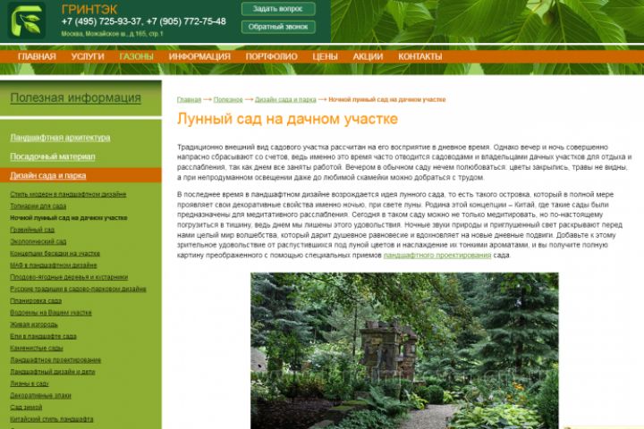 Информационная статья для компании, занимающейся ландшафтным дизайном. Половина текстов на сайте мои, сотрудничали много лет.