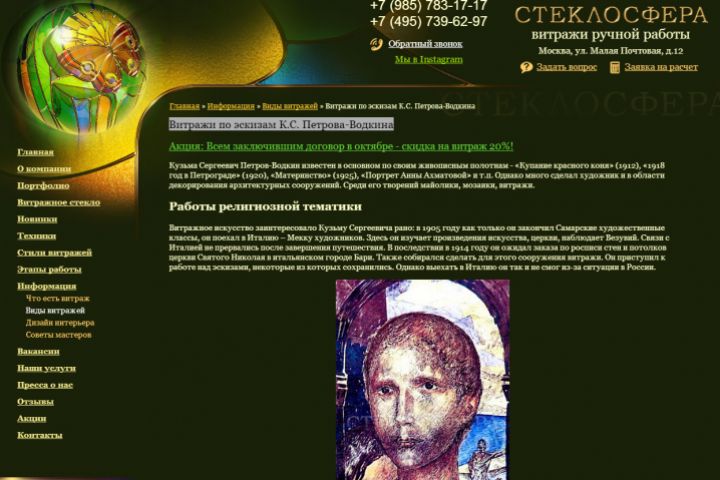 Информационная статья для сайта витражной мастерской, с которой мы сотрудничали много лет.