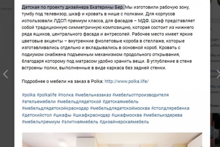 Описание готовых проектов мебельной мастерской "Полка". Все описания в группе мои.