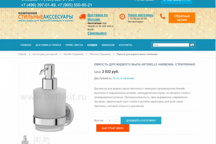 Описание товаров для ванной для сайта bathkit.ru. Тексты длиннее, чем на скринах, внизу еще описание характеристик.