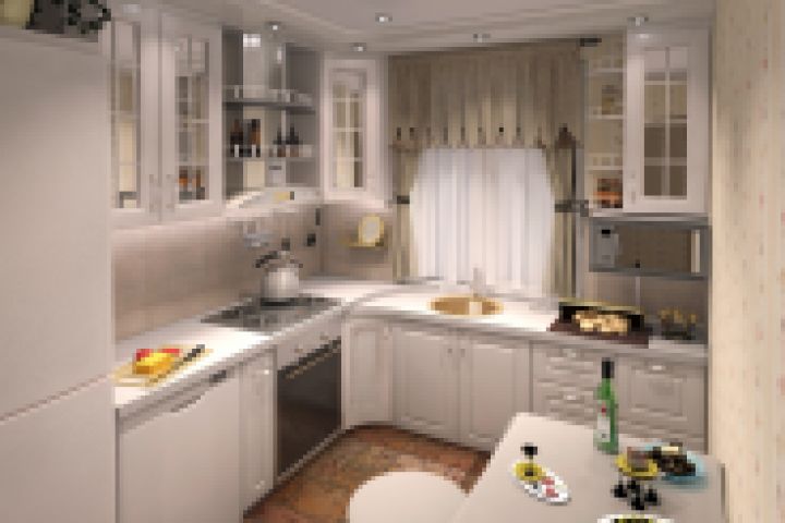 Цель визуализации показать заказчику в пространстве маленькой кухни перенос мойки к окну. Предложен классический стиль. В приложении 3D-панорама. Скачав, перетяните ее в браузер. Мышью можно управлять вращением, +/- приближением.