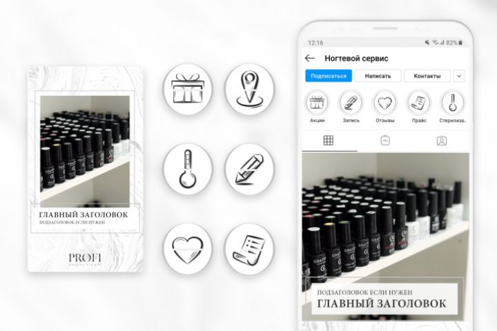 Набор элементов для оформления профиля мастера ногтевого сервиса в инстаграм.