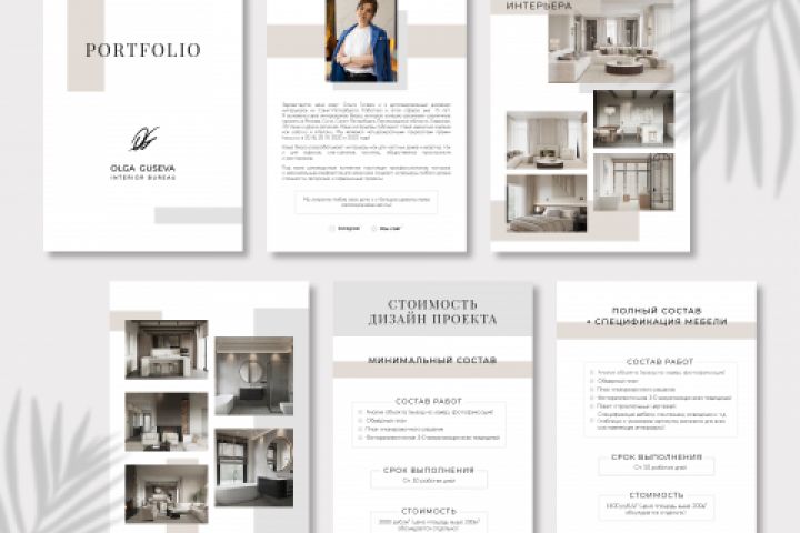 Вёрстка портфолио-каталога для дизайнера интерьера.