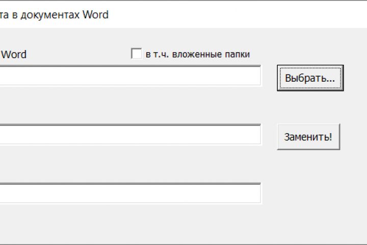 Макрос выполняет замену текста во всех документах Word (*.doc и .docx) выбранной папки.