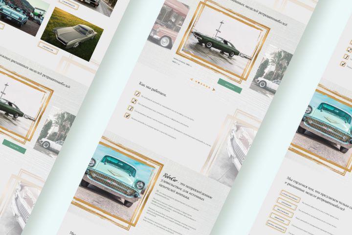 Лендинг для компании, специализирующейся на аренде уникальных ретроавтомобилей.