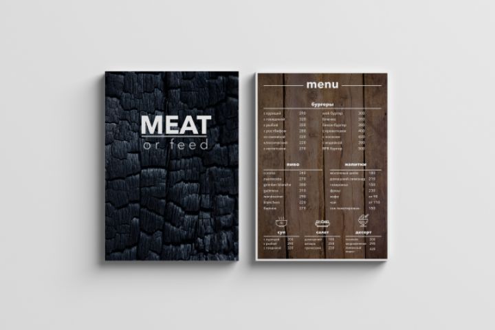 Городской бургерной потребовался редизайн меню. Мужское, лаконичное, брутальное меню, от которого так и пахнет мясом