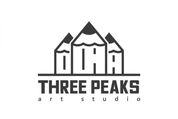 Логотип для арт-студии Three peaks В роли трех гор или трех "пиков" выступают карандаши- неотъемлемый атрибут творчества
