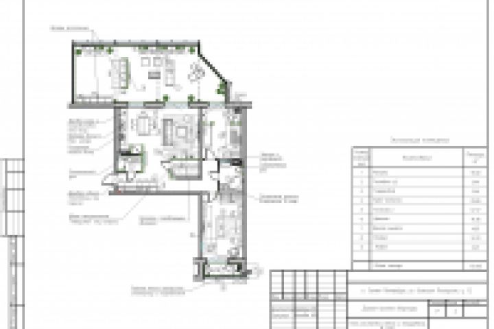 План расстановки мебели и оборудования 3-х к.кв