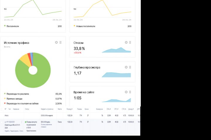 Корректировки пользователи старше 24 лет. Корректировки по платежеспособности на более обеспеченных людей. Рекламная компания по всей России. Одна рекламная компания на поиске, с оплатой за клики. Вторая ретаргетинг - на пользователей которые провели на сайте более 120с и не связались через мессенджеры и телефон. Заказал у яндекса тестовую цель целевой звонок - это когда платишь за реальный разговор, время разговора выставил более 180с. Своего рода колл - трекинг от яндекса. На данный момент привлекли 3 млн. Рекламная компания в работе тестовый бюджет на неделю 10000р.