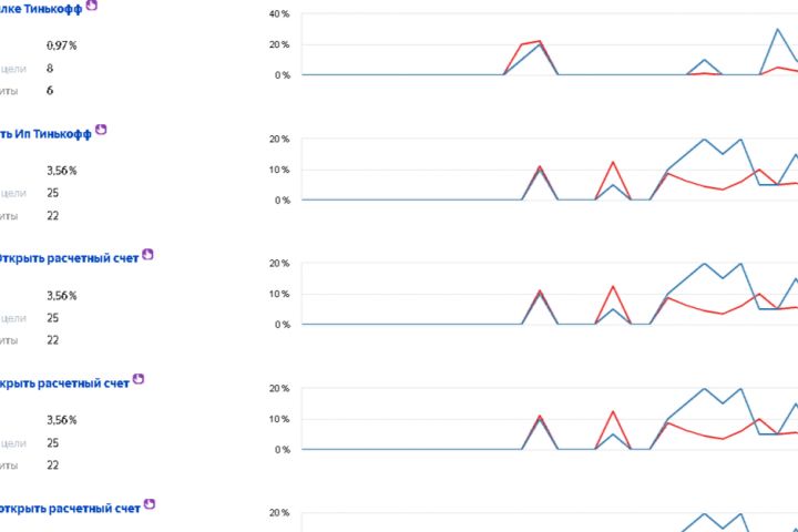 Работа по проекту Финансовый агрегатор - сервис банковских партнерских программ BankPartnerBonus.ru. Смысл сервиса заключается в том, что бы люди открывали ИП и расчетные счета именно через реферальные ссылки сервиса. Основные конкуренты - восемь крупнейших банков РФ. Бюджет небольшой 30000р в месяц поэтому работу проводил творчески - создал сайт направленный именно на бонусы и выгоду, прибыль потенциальных клиентов, которые которые откроют счета именно у нас, а не на прямую у банков.