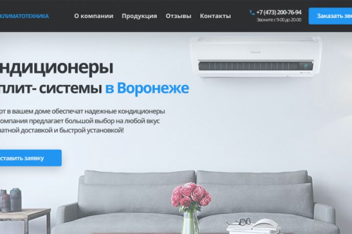 Лендинг магазина, компании котрая продает и устанавливает кондиционеры и сплит системы в Воронеже