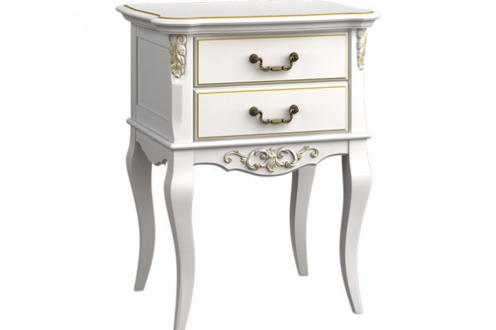 Моделирование и визуализация прикроватной тумбы с двумя выдвижными ящиками Текстурирование: белая эмаль с золотой патиной Для компании: Альянс 21 век