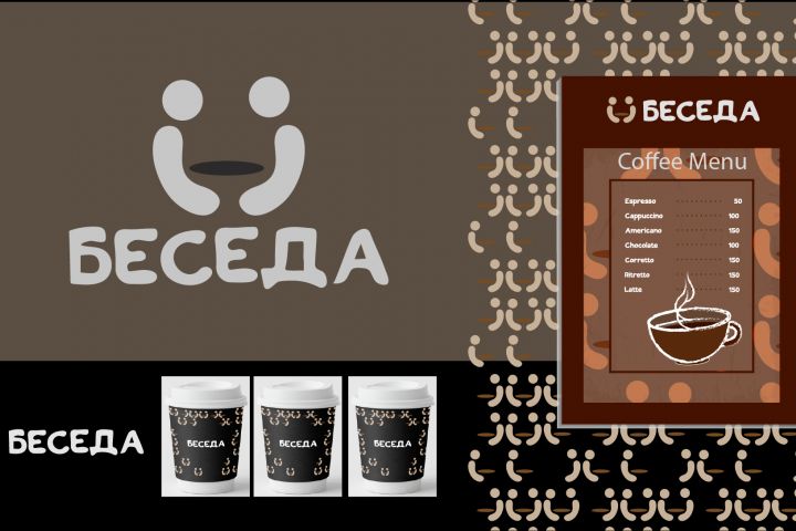 Логотип и вывеска кафе «Беседа» и разработка дизайна меню