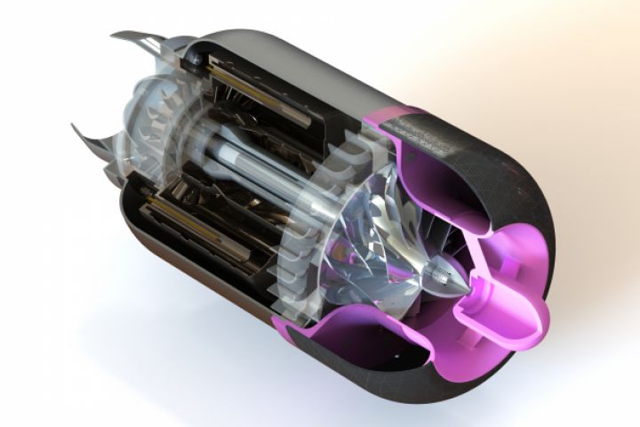 Авиамодельный реактивный двигатель с тягой в 310Н. В описании лежит STL файл рабочего колеса компрессора (Рассчитано в ansys).