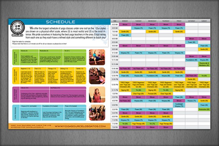 Информационная листовка с расписанием для йога-центра.