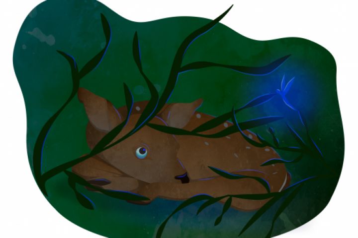 Олень в лесу (иллюстрация)
