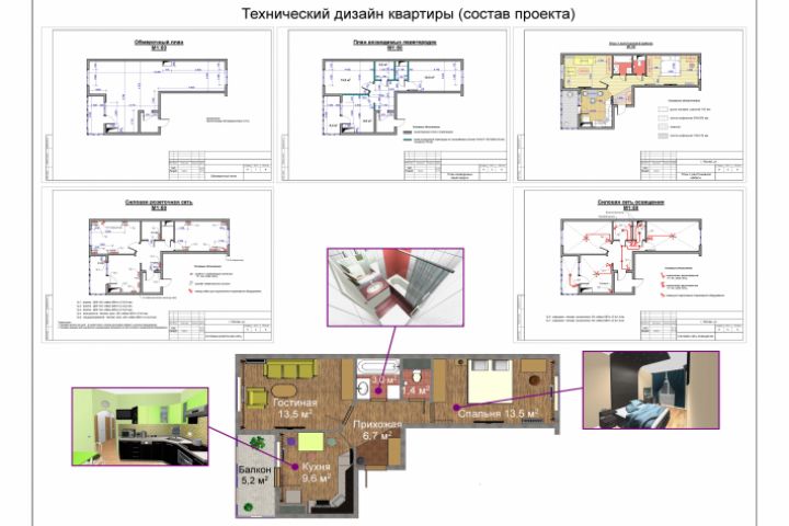 Технический дизайн квартиры, состав: