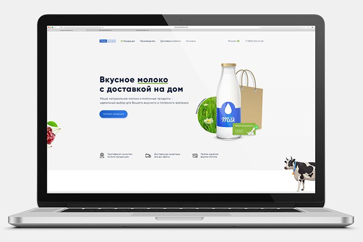 Лендинг фермерской компании по производству и продаже натурального молока и молочных продуктов собственного производства