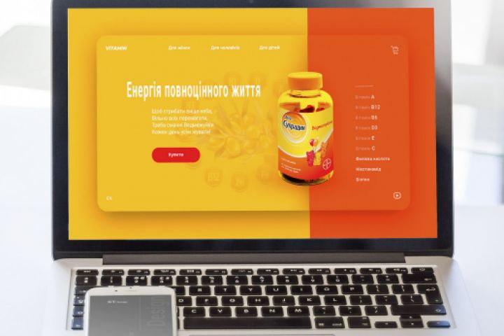 Белый цвет текста без засечек идеально контрастирует с сочными цветами фона.