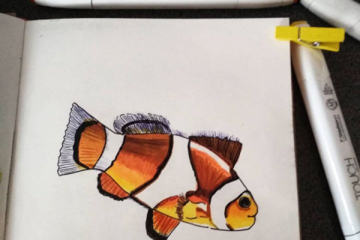 Необходимо было изобразить рыбку. Время: 7 минут.