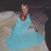 Голубое платье, скалы, брюнетка
