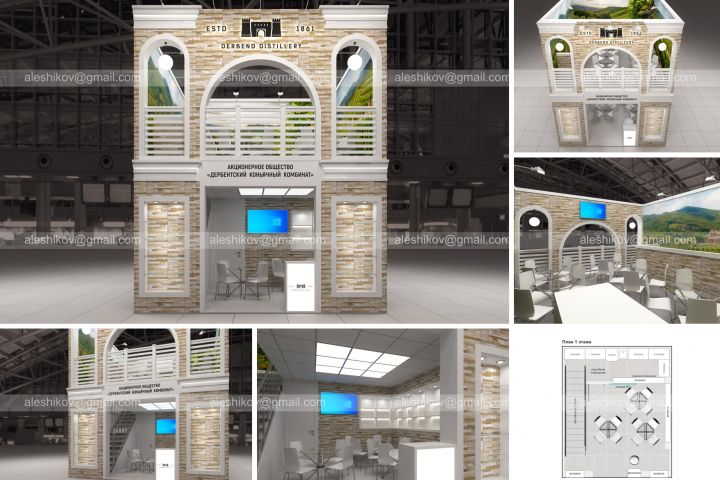 Дизайн стенда для компании Дербентский Коньячный Комбинат на выставку Продэкспо-2023. Построен.