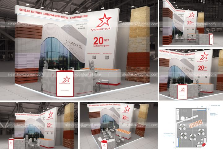Дизайн стенда для компании Алюминстрой на выставку Мосбилд-2023. Построен.
