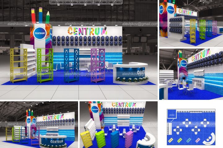 Дизайн стенда для компании Центрум на выставку Скрепка-2023. Построен.