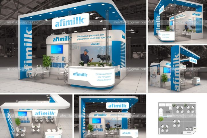 Дизайн стенда Афимилк на выставку Продэкспо-2021. Построен.