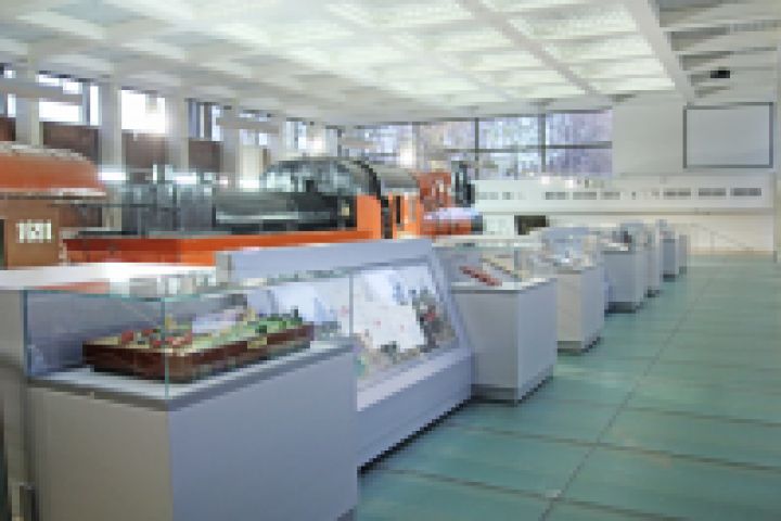 Антресоль. Слева напольные витрины, справа навесные (не в кадре) Напольное покрытие - триплекс по деревянным шпалам.