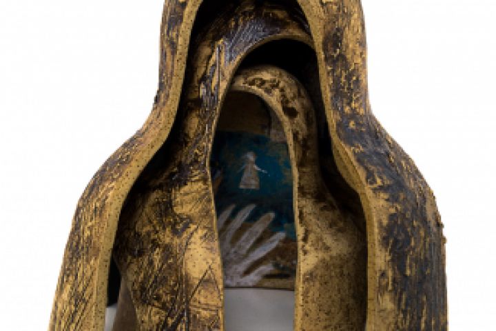 Художественная работа: трехчастная композиция "Внутренний мир" представляет собой композицию из трех частей, которые могут существовать рядом или составляться друг над другом. Композиция повествует о жизни женщины в разное возрастное время: детство - самое скоротечное, это - маленькая скульптура, взрослая жизнь - самый длинный период - самая большая скульптура сверху, и старость - средняя скульптура, ближе к внукам и к детству. Внутри - роспись основанная на моем представлении о том, как эти периоды проживает женщина, и каков может быть ее внутренний мир.