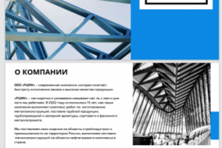 Создание каталога для компании ООО РЦМК по производству металлоконструкций.