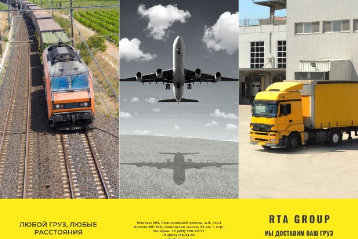 Создание брендового буклета для логистической компании RTA GROUP. Работа с фирменным цветом.