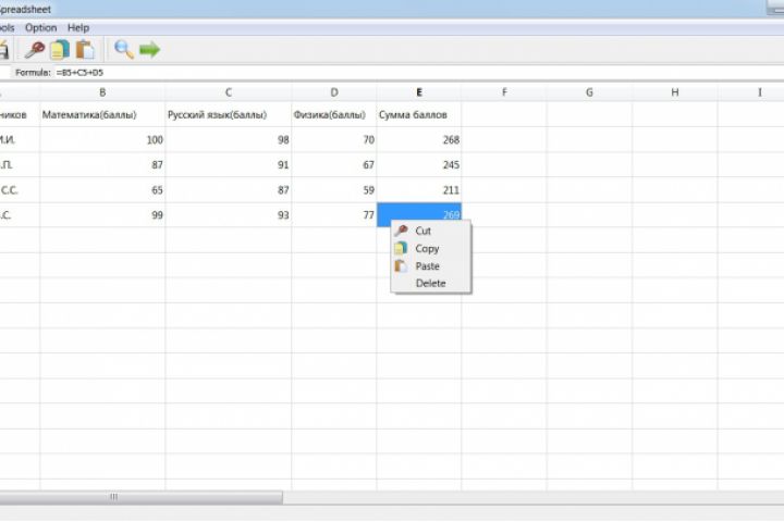 Это электронная таблица, функционал схож с Microsoft Excell. Также используются формулы, сортировки, поиск. Функции работы с файлом, редактирование также реализованы. Рабочая версия. Выгодно отличается от Excell, Spreadsheet - кроссплатформенная программа, будет работать как на Windows, так и на Linux и MacOS.