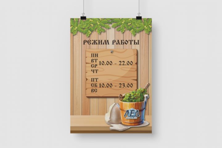 Табличка с режимом работы для бани