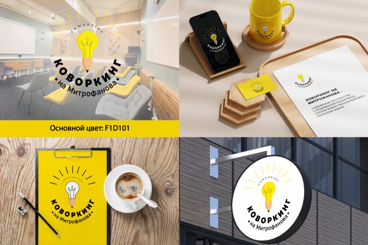 В рамках фирменного стиля для делового пространства "Коворкинг на Митрофанова" был разработан логотип, вывеска, подобраны фирменные цвета и фирменные шрифты