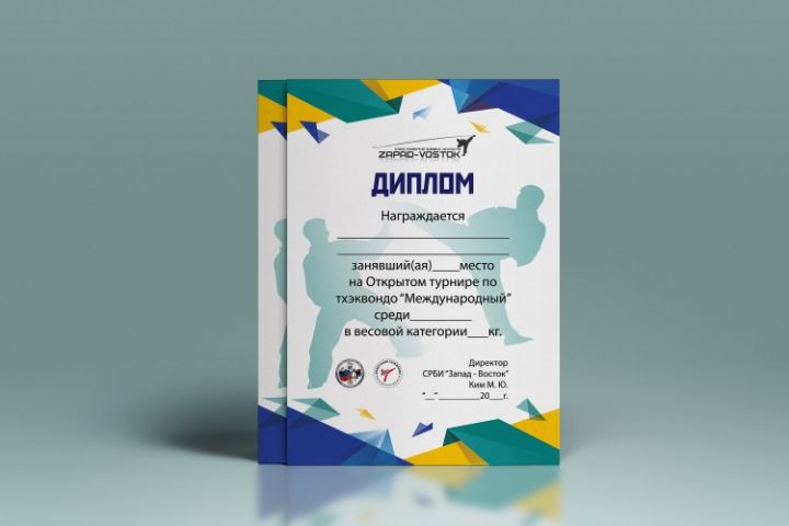 Дизайн диплома для победителей соревнований выполнен в рамках разработки фирменного стиля спортивной школы "Запад — Восток".