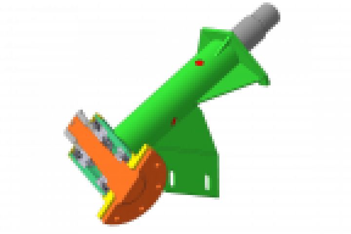 3D модель стойки дисковой бороны в сборе ( стойка, ступица, подшипники, манжеты, уплотнительные кольца, чистик). Выполнено в программе Компас 3D.V12