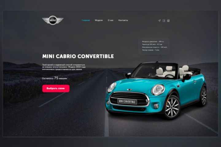 Задачей данной работы была иллюстрация посетителям сайта новой модели автомобиля. Темный фон создает ощущение надежности и статуса, а яркий автомобиль сразу обращает на себя внимание.