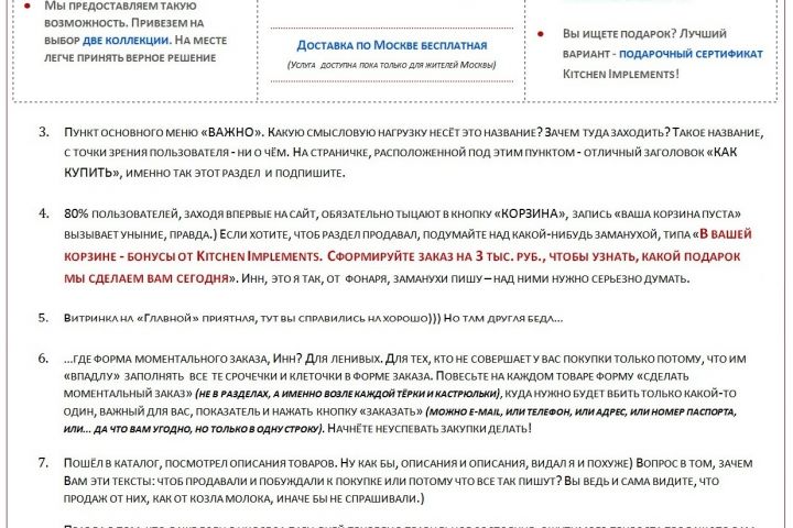 Бонус для постоянной заказчицы - беглый поверхностный экспресс-аудит её интернет-магазина, плюс, простые, но действенные рекомендации по увеличению конверсии. Маленький подарок, в благодарность за большие заказы.