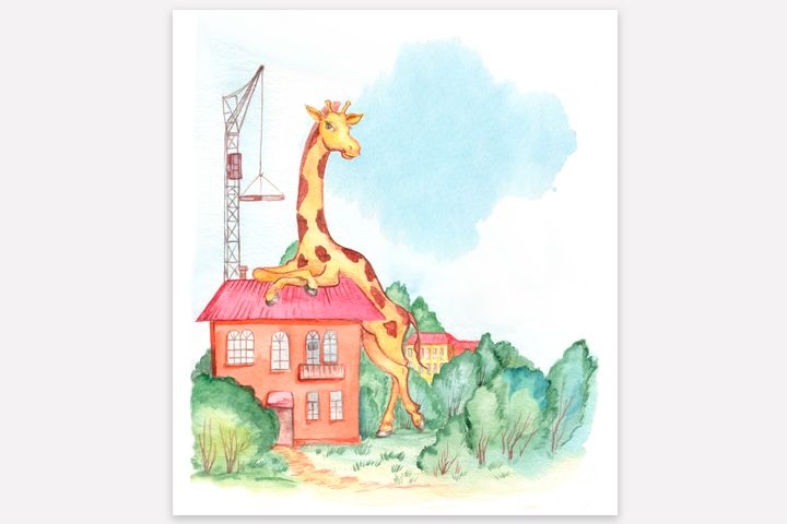 Иллюстрация для детской книги стихов. Жираф. Акварель.