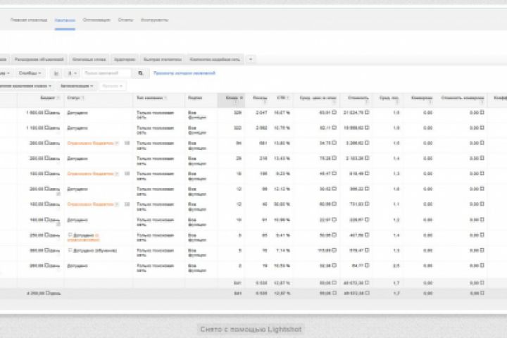 Стастика с AdWords аккаунта по нескольким кампаниям для российского региона.