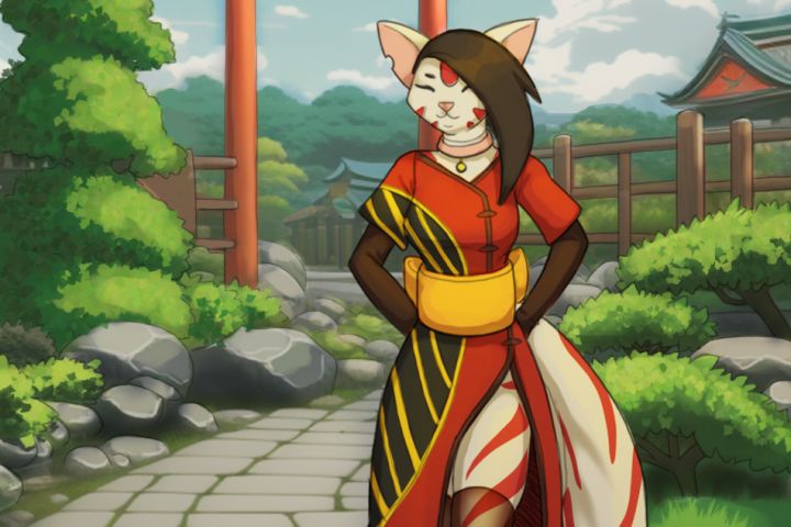 Иллюстрация с персонажем Баконэко из пака артов с разработанным персонажем на продажу.